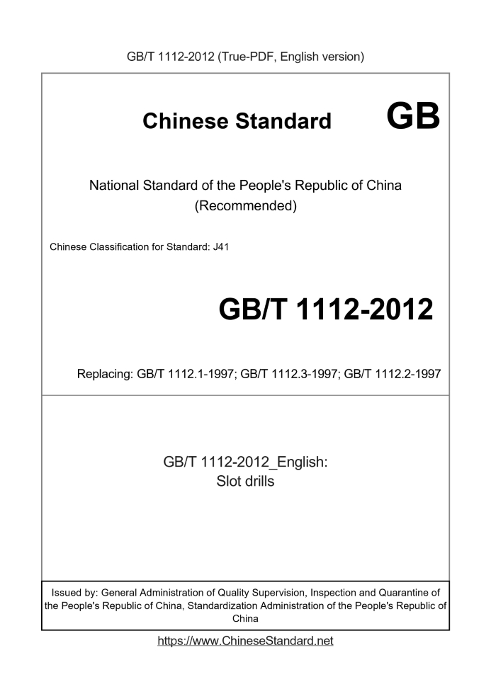 Delivery: <= 3 days. True-PDF full-copy in English will be manually translated and delivered via email. GB/T 1112-2012: Slot drills Status: Valid GB/T 1112: Historical versions
