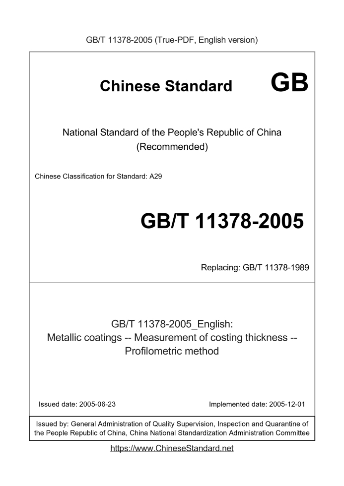 GB/T 11378-2005: Metallic coatings -- Measurement of costing thickness -- Profilometric method