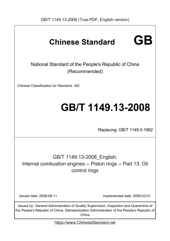 Delivery: <= 3 days. True-PDF full-copy in English will be manually translated and delivered via email. GB/T 1149.13-2008: Internal combustion engines -- Piston rings -- Part 13: Oil control rings Status: Valid