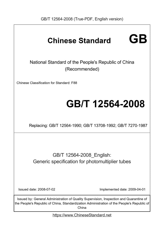 GB/T 12564-2008: Generic specification for photomultiplier tubes