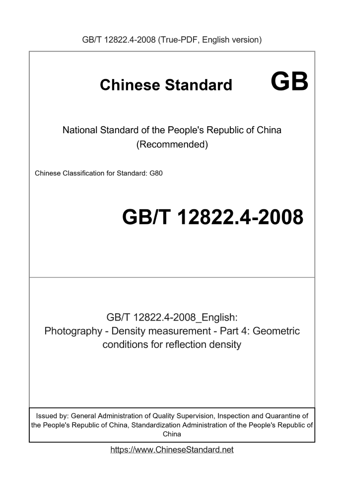 GB/T 12822.4-2008RFQ ASK 3 days Photography - Density measurement - Part 4: Geometric conditions for reflection density