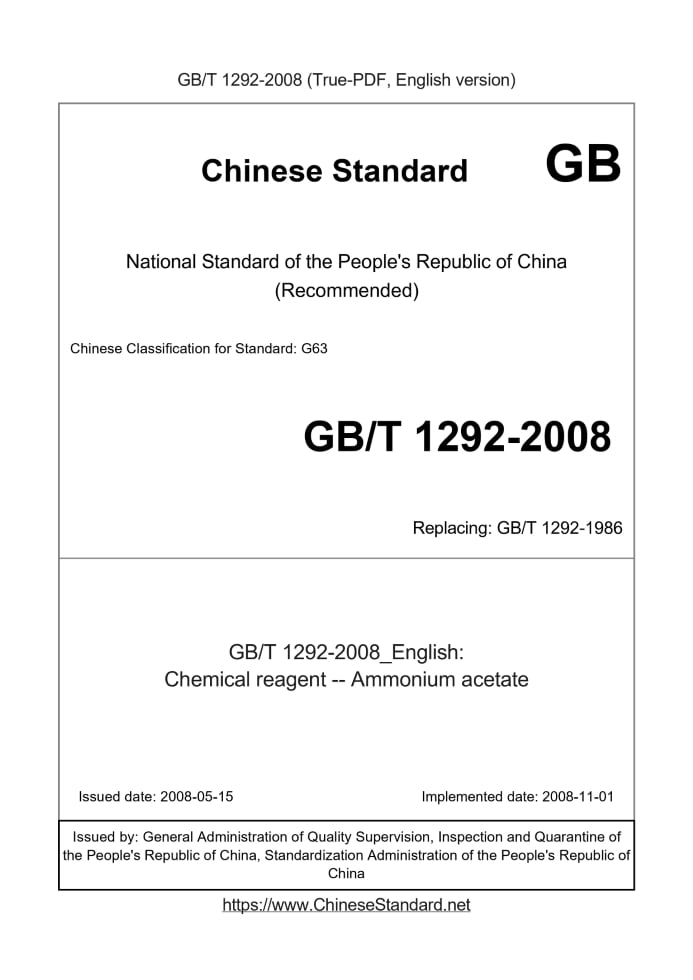 GB/T 1292-2008154 Add to Cart 3 days Chemical reagent -- Ammonium acetate Valid