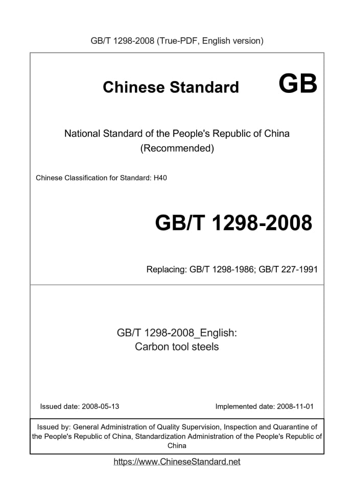 Delivery: <= 4 days. True-PDF full-copy in English will be manually translated and delivered via email. GB/T 1298-2008: Carbon tool steels Status: Obsolete GB/T 1298: Historical versions