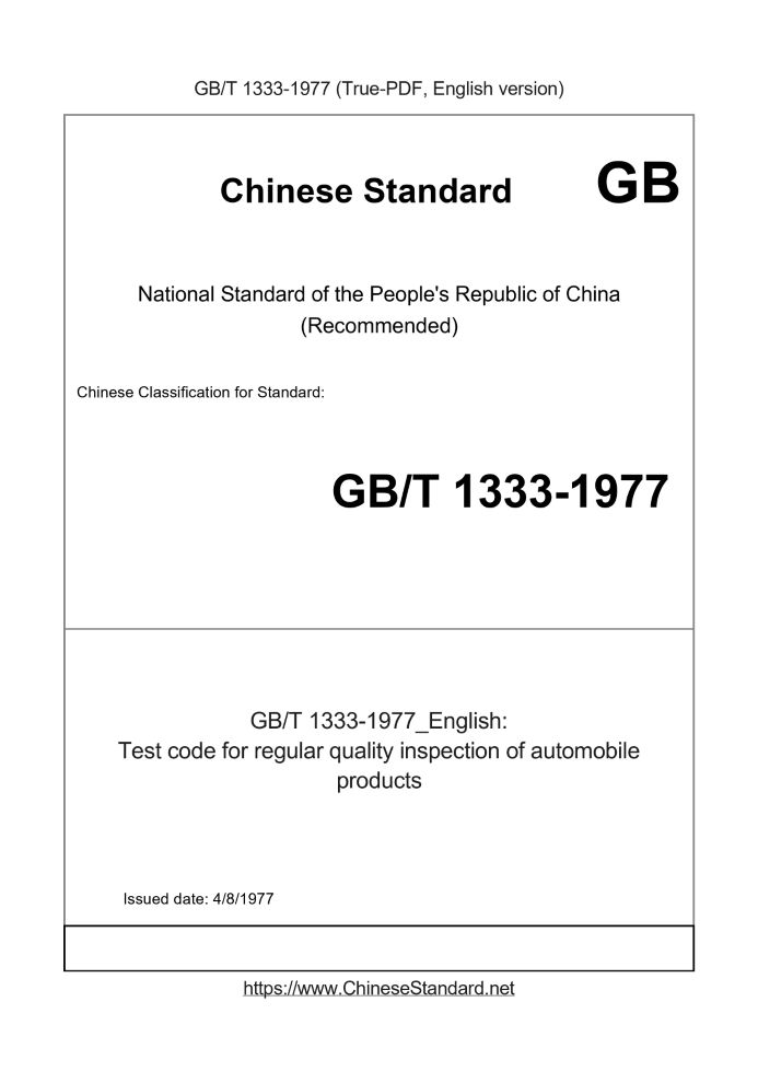 GB/T 1333-1977RFQ ASK 3 days Test code for regular quality inspection of automobile products Obsolete