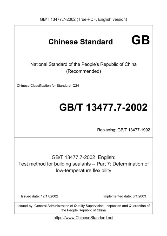 GB/T 13477.7-2002: Test method for building sealants -- Part 7: Determination of low-temperature flexibility