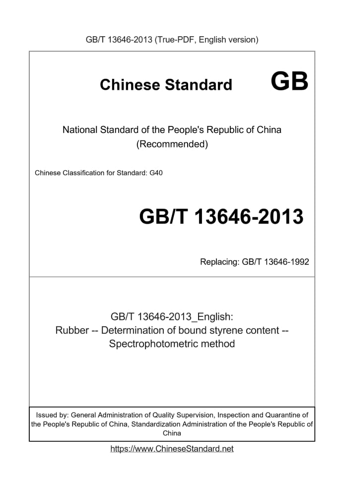 GB/T 13646-2013: Rubber -- Determination of bound styrene content -- Spectrophotometric method