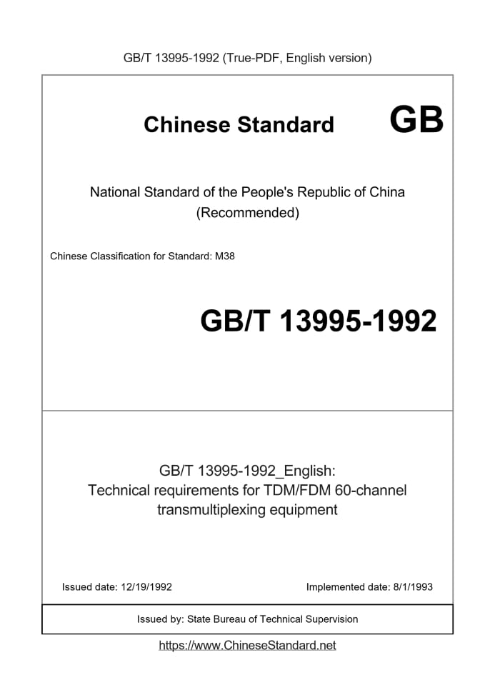 Basic dataStandard ID: GB/T 13995-1992 (GB/T13995-1992)Description (Translated English): Technical requirements for TDM/FDM 60-channel transmultiplexing equipment Sector / Industry: National Standard (Recommended) Classification of Chinese Standard: M38 Classification of International Standard: 33.040.40 Word Count Estimation: 27,275 Date of Issue: 12/19/1992 Date of Implementation: 8/1/1993 Quoted Standard: GB 3379; GB 3384; GB 3971.2; GB 4576; GB 4577; GB 6879; GB 7609; GB 7610; GB 7611; GB 12171, Adopted Standard: CCITT G.792, NEQ; CCITT G.793, NEQ Issuing agency(ies): State Bureau of Technical Supervision Summary: This standard specifies the interface features 60 multiplexed conversion device, path performance, timing synchronization mode, signaling conversion requirements and technical conditions for the use of maintenance and other aspects. This standard applies to the public network and a private network using a variety of ways to achieve the S-and P-type 60 multiplexed switching equipment. Tips & Frequently Asked Questions:Question 1: How long will the true-PDF of GB/T 13995-1992_English be delivered?Answer: Upon your order, we will start to translate GB/T 13995-1992_English as soon as possible, and keep you informed of the progress. The lead time is typically 3 ~ 5 working days. The lengthier the document the longer the lead time.Question 2: Can I share the purchased PDF of GB/T 13995-1992_English with my colleagues?Answer: Yes. The purchased PDF of GB/T 13995-1992_English will be deemed to be sold to your employer/organization who actually pays for it, including your colleagues and your employer's intranet.Question 3: Does the price include tax/VAT?Answer: Yes. Our tax invoice, downloaded/delivered in 9 seconds, includes all tax/VAT and complies with 100+ countries' tax regulations (tax exempted in 100+ countries) -- See Avoidance of Double Taxation Agreements (DTAs): List of DTAs signed between Singapore and 100+ countriesQuestion 4: Do you accept my currency other than USD?Answer: Yes. If you need your currency to be printed on the invoice, please write an email to Sales@ChineseStandard.net. In 2 working-hours, we will create a special link for you to pay in any currencies. Otherwise, follow the normal steps: Add to Cart -- Checkout -- Select your currency to pay. |