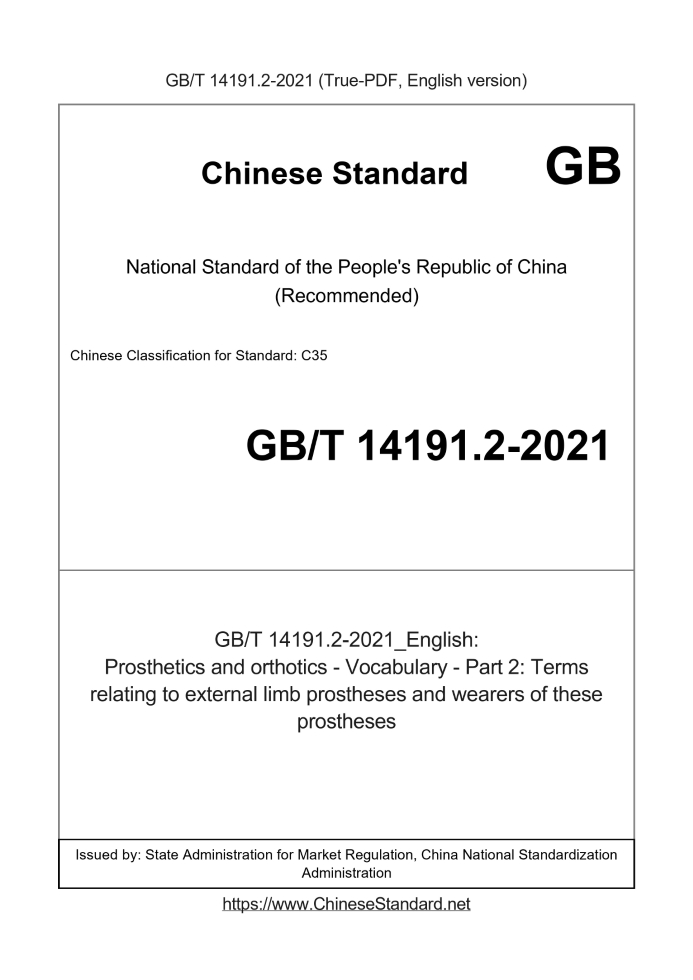 Delivery: <= 3 days. True-PDF full-copy in English will be manually translated and delivered via email. GB/T 14191.2-2021: Prosthetics and orthotics - Vocabulary - Part 2: Terms relating to external limb prostheses and wearers of these prostheses Status: Valid
