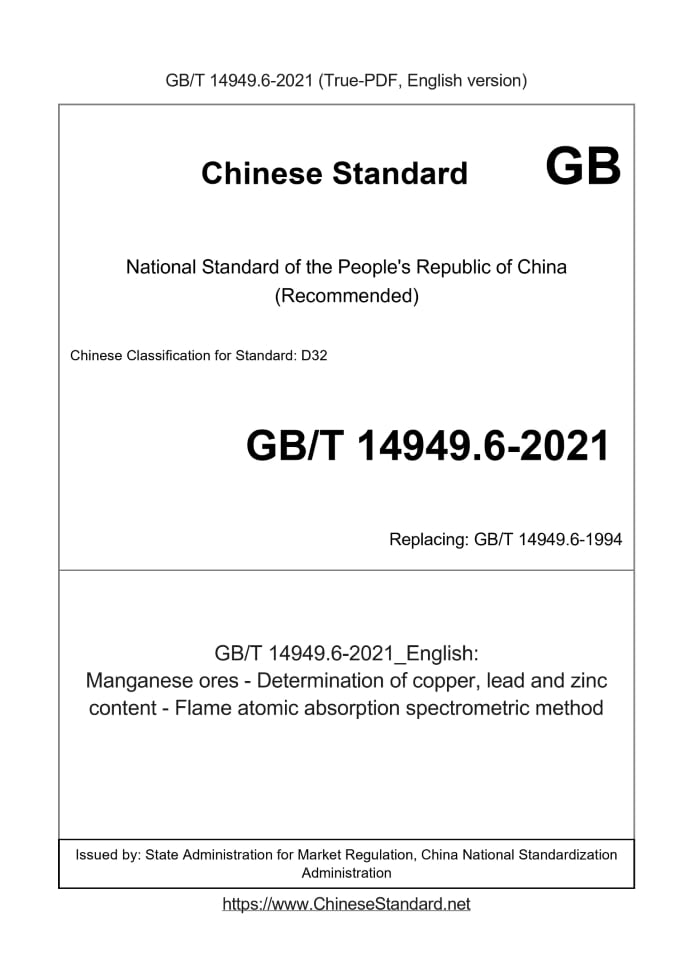 GB/T 14949.6-2021: Manganese ores - Determination of copper, lead and zinc content - Flame atomic absorption spectrometric method