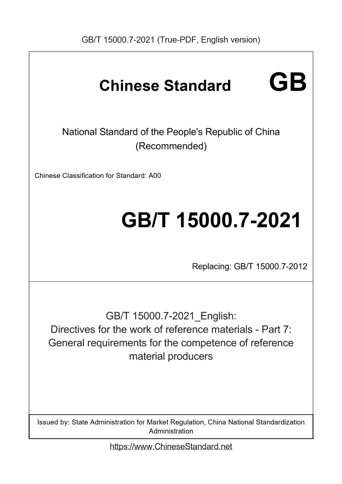Delivery: <= 4 days. True-PDF full-copy in English will be manually translated and delivered via email. GB/T 15000.7-2021: Directives for the work of reference materials - Part 7: General requirements for the competence of reference material producers Status: Valid GB/T 15000.7: Historical versions
