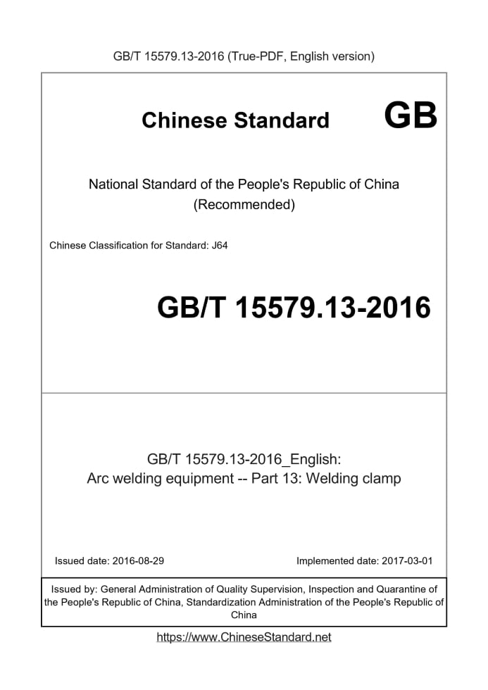 GB/T 15579.13-2016: Arc welding equipment -- Part 13: Welding clamp