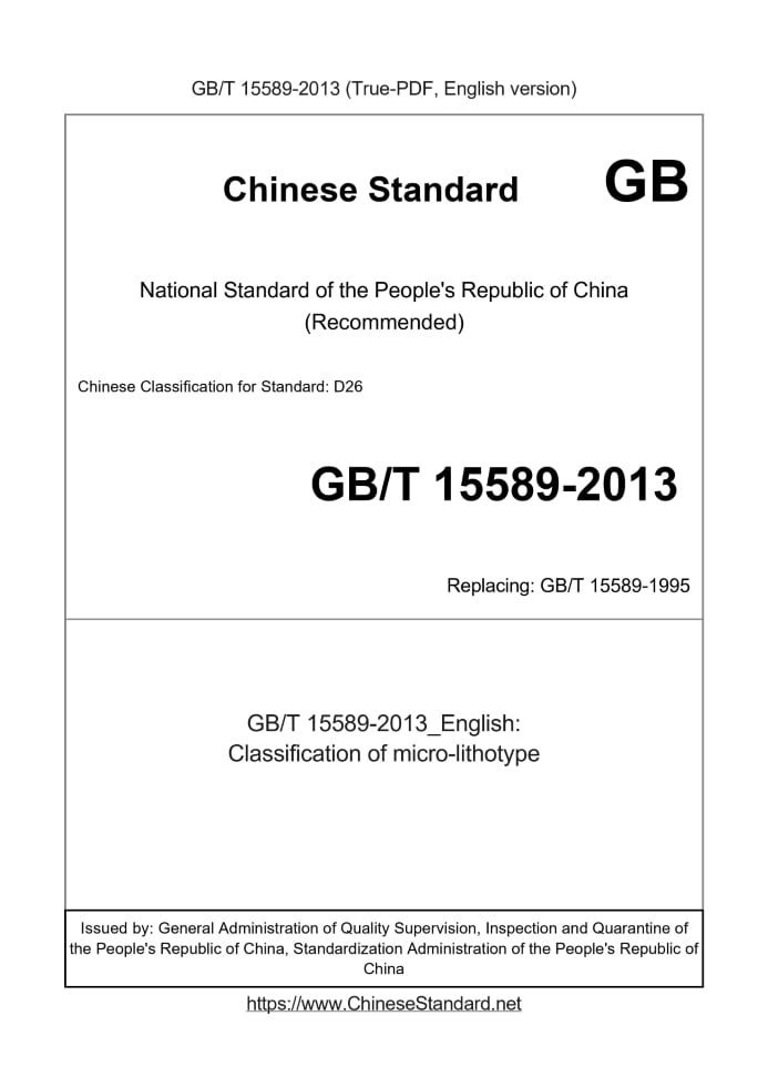Delivery: <= 2 days. True-PDF full-copy in English will be manually translated and delivered via email. GB/T 15589-2013: Classification of micro-lithotype Status: Valid GB/T 15589: Historical versions