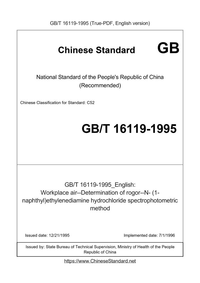 GB/T 16119-1995: Workplace air--Determination of rogor--N- (1-naphthyl)ethylenediamine hydrochloride spectrophotometric method