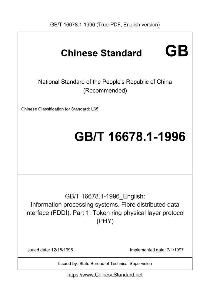 Delivery: <= 4 days. True-PDF full-copy in English will be manually translated and delivered via email. GB/T 16678.1-1996: Information processing systems. Fibre distributed data interface (FDDI). Part 1: Token ring physical layer protocol (PHY)