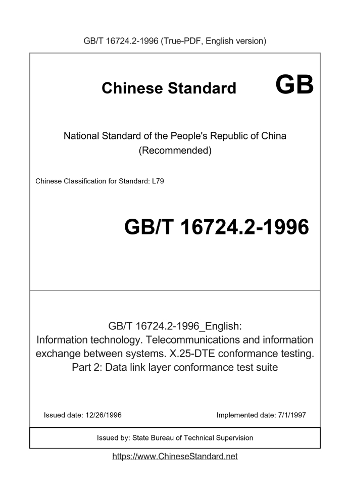 Basic dataStandard ID: GB/T 16724.2-1996 (GB/T16724.2-1996)Description (Translated English): Information technology. Telecommunications and information exchange between systems. X.25-DTE conformance testing. Part 2: Data link layer conformance test suite Sector / Industry: National Standard (Recommended) Classification of Chinese Standard: L79 Classification of International Standard: 35.100.20 Word Count Estimation: 224,223 Date of Issue: 12/26/1996 Date of Implementation: 7/1/1997 Quoted Standard: GB 9387-1988; GB/T 14399-1993; GB/T 16724.1; ISO/IEC 9646.1: 1991; ISO/IEC 9646.2: 1991; ISO/IEC 9646.3: 1991; ISO/IEC 9646.4: 1991; ISO/IEC 9646.5: 1991; CCITT X.25: 1980; CCITT X.25: 1984, Adopted Standard: ISO/IEC 8882-2-1992, IDT Issuing agency(ies): State Bureau of Technical Supervision Summary: This standard specifies an abstract test suite, which is used to test and GB/T 14399 or CCITT X. 25 (1980, 1984) concerning the consistency of the data link layer of the IUT. Tips & Frequently Asked Questions:Question 1: How long will the true-PDF of GB/T 16724.2-1996_English be delivered?Answer: Upon your order, we will start to translate GB/T 16724.2-1996_English as soon as possible, and keep you informed of the progress. The lead time is typically 11 ~ 16 working days. The lengthier the document the longer the lead time.Question 2: Can I share the purchased PDF of GB/T 16724.2-1996_English with my colleagues?Answer: Yes. The purchased PDF of GB/T 16724.2-1996_English will be deemed to be sold to your employer/organization who actually pays for it, including your colleagues and your employer's intranet.Question 3: Does the price include tax/VAT?Answer: Yes. Our tax invoice, downloaded/delivered in 9 seconds, includes all tax/VAT and complies with 100+ countries' tax regulations (tax exempted in 100+ countries) -- See Avoidance of Double Taxation Agreements (DTAs): List of DTAs signed between Singapore and 100+ countriesQuestion 4: Do you accept my currency other than USD?Answer: Yes. If you need your currency to be printed on the invoice, please write an email to Sales@ChineseStandard.net. In 2 working-hours, we will create a special link for you to pay in any currencies. Otherwise, follow the normal steps: Add to Cart -- Checkout -- Select your currency to pay. |