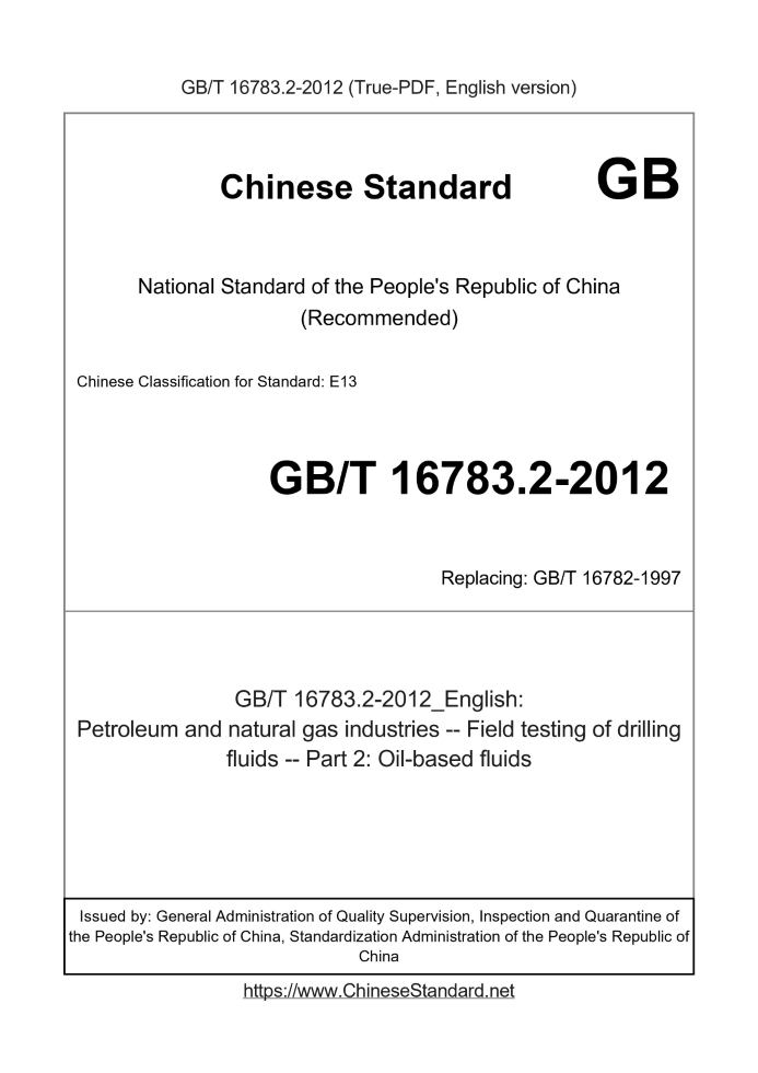Delivery: <= 10 days. True-PDF full-copy in English will be manually translated and delivered via email. GB/T 16783.2-2012: Petroleum and natural gas industries -- Field testing of drilling fluids -- Part 2: Oil-based fluids Status: Valid