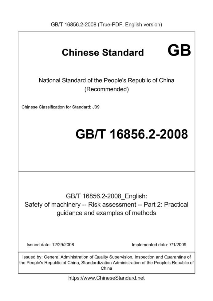 Basic dataStandard ID: GB/T 16856.2-2008 (GB/T16856.2-2008)Description (Translated English): Safety of machinery -- Risk assessment -- Part 2: Practical guidance and examples of methods Sector / Industry: National Standard (Recommended) Classification of Chinese Standard: J09 Classification of International Standard: 13.110 Word Count Estimation: 56,568 Date of Issue: 12/29/2008 Date of Implementation: 7/1/2009 Quoted Standard: GB 5226.1; GB 11291; GB/T 15706.1-2007; GB/T 15706.2-2007; GB/T 16855.1; GB/T 16856.1-2008; ISO 11111; ISO 13732-1; ISO 13852 Adopted Standard: ISO/TR 14121-2-2007, IDT Regulation (derived from): Announcement of Newly Approved National Standards 2008 No. 21 (No. 134 overall) Issuing agency(ies): General Administration of Quality Supervision, Inspection and Quarantine of the People's Republic of China, Standardization Administration of the People's Republic of China Summary: This Standard specifies according to GB/T 16856. 1-2008 mechanical implementation guidelines for risk assessment and describes the process every step of the various methods and tools related. GB/T 16856.2-2008: Safety of machinery -- Risk assessment -- Part 2: Practical guidance and examples of methods---This is a DRAFT version for illustration, not a final translation. Full copy of true-PDF in English version (including equations, symbols, images, flow-chart, tables, and figures etc.) will be manually/carefully translated upon your order. Safety of machinery Risk assessment Part 2. Practical guidance and examples of methods ICS 13.110 J09 National Standards of People's Republic of China GB/T 16856.2-2008/ISO /TR14121-2.2007 Safety of machinery - Risk assessment Part 2. Implementation guidance and examples of methods (ISO /T R14121-2.2007, IDT) Posted 2008-12-29 2009-07-01 implementation Administration of Quality Supervision, Inspection and Quarantine of People's Republic of China Standardization Administration of China released Table of ContentsPreface Ⅰ Introduction Ⅱ 1 Scope 1 2 Normative references 1 3 Terms and definitions 4 Risk Assessment prepared 2 5 Risk Assessment Process 2 6 reduce the risk (see GB/T 16856.1-2008 and 8.2 GB/T 15706.2) 8 7 Risk Assessment Iteration (see GB/T 15706.1-2007 5.5) 11 8 Risk Assessment document (see GB/T 16856.1-2008 Chapter 9) 11 Examples of the method in Appendix A (informative) for several steps of the risk assessment process 12 Application Examples Appendix B (informative) Risk assessment and risk reducing the process 36 References 51 GB/T 16856.2-2008/ISO /TR14121-2.2007ForewordGB/T 16856 "Safety of machinery - Risk assessment" is divided into two parts. --- Part 1. Principles; --- Part 2. Implementation guidance and examples of methods. This section GB/T Part of 216,856. This part identical with ISO /T R14121-2.2007 "Safety of machinery - Risk assessment - Part 2. Implementation guidelines and examples of methods" (In English). This section is equivalent translation ISO /T R14121-2.2007. For ease of use, this section made the following editorial changes. --- With "this Part" instead of "ISO 14121 This part"; --- Deleted the ISO foreword, preface rewritten; --- The Lead Normative documents according to GB/T 1.1-2000 modified and ISO /T R14121-2.2007 references Corresponding to international standards to national standards. This section in Appendix A and Appendix B is an informative annex. This part of the National Safety Standardization Technical Committee (SAC/TC208) and focal points. This section is drafted. Mechanical Science Research Institute of Machine Productivity Promotion Center. The main drafters of this section. Fu Dawei, Li Qin, Yan Ning, the Kingdom of deduction, ROCKETS, Nie Jianjun, Xiao Jianmin, Fu Rui, Zhang Xiaofei, Guo Shuguang. This section first formulated. GB/T 16856.2-2008/ISO /TR14121-2.2007IntroductionThis section GB/T 16856 stems update GB/T 16856 efforts to comply with GB/T 15706.1-2007 and GB/T 15706.2-2007. The purpose of risk assessment is to identify hazards and assess and evaluate risks in order to reduce the risk. There are many methods and tools that can be used to achieve this A purpose, this section describes several of these methods and tools. The choice of which method or tool, depending on the industry, company or individual Preferences. Select specific methods or tools are not more important than the risk assessment process itself. Just take a risk to be identified from the risk of reduced Systems approach, to take into account all risk factors. Pay more attention to risk assessment rigor of the process, rather than the accuracy of the results. If later, after determining the mechanical design or complete machine manufacturing additional protective measures, the design additional protective measures will increase costs and It may limit the mechanical ease of use. During the design phase of the mechanical changes is usually more economical and effective, therefore, the mechanical design stage into Bank's risk assessment is very good. When it is determined mechanical design, manufacturing a prototype and after a period of use, the risk assessment should be carried out again. In addition to the design phase, the period during manufacture and commissioning can be carried out risk evaluations, modifications or improvements in the mechanical process or evaluation At any time mechanically (for example. when the accident or breakdown), risk assessment can be carried out. Before re-evaluation of risk, shall verify the effectiveness of protective measures. GB/T 16856.2-2008/ISO /TR14121-2.2007 Safety of machinery - Risk assessment Part 2. Implementation guidance and examples of methods1 ScopeThis section GB/T 16856 is given in accordance with GB/T 16856.1-2008 mechanical implementation of risk assessment guidelines and description The process every step of the various methods and tools related. This section also provides a reduced risk of mechanical (meet GB/T 15706.1-2007) implementation guidelines given in order to a