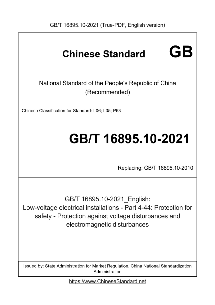 Delivery: <= 6 days. True-PDF full-copy in English will be manually translated and delivered via email. GB/T 16895.10-2021: Low-voltage electrical installations - Part 4-44: Protection for safety - Protection against voltage disturbances and electromagnetic disturbances Status: Valid GB/T 16895.10: Historical versions