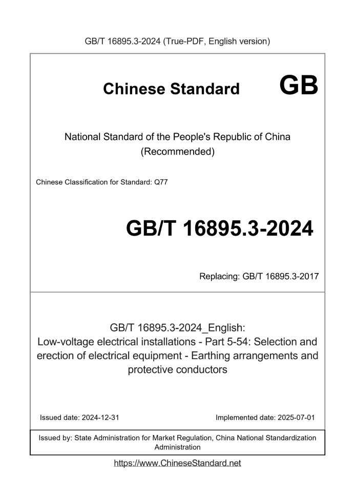 Delivery: <= 6 days. True-PDF full-copy in English will be manually translated and delivered via email. GB/T 16895.3-2024: Low-voltage electrical installations - Part 5-54: Selection and erection of electrical equipment - Earthing arrangements and protective conductors Status: Valid GB/T 16895.3: Historical versions