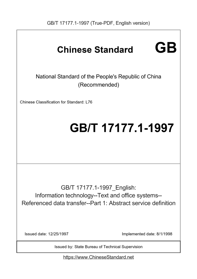 GB/T 17177.1-1997: Information technology--Text and office systems--Referenced data transfer--Part 1: Abstract service definition
