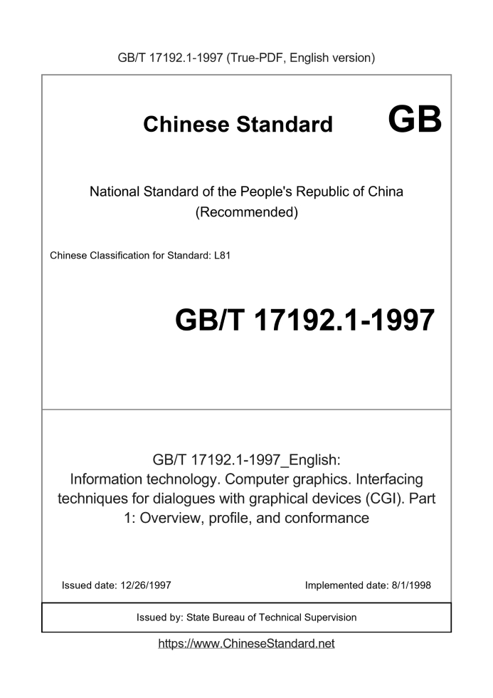 GB/T 17192.1-1997: Information technology. Computer graphics. Interfacing techniques for dialogues with graphical devices (CGI). Part 1: Overview, profile, and conformance