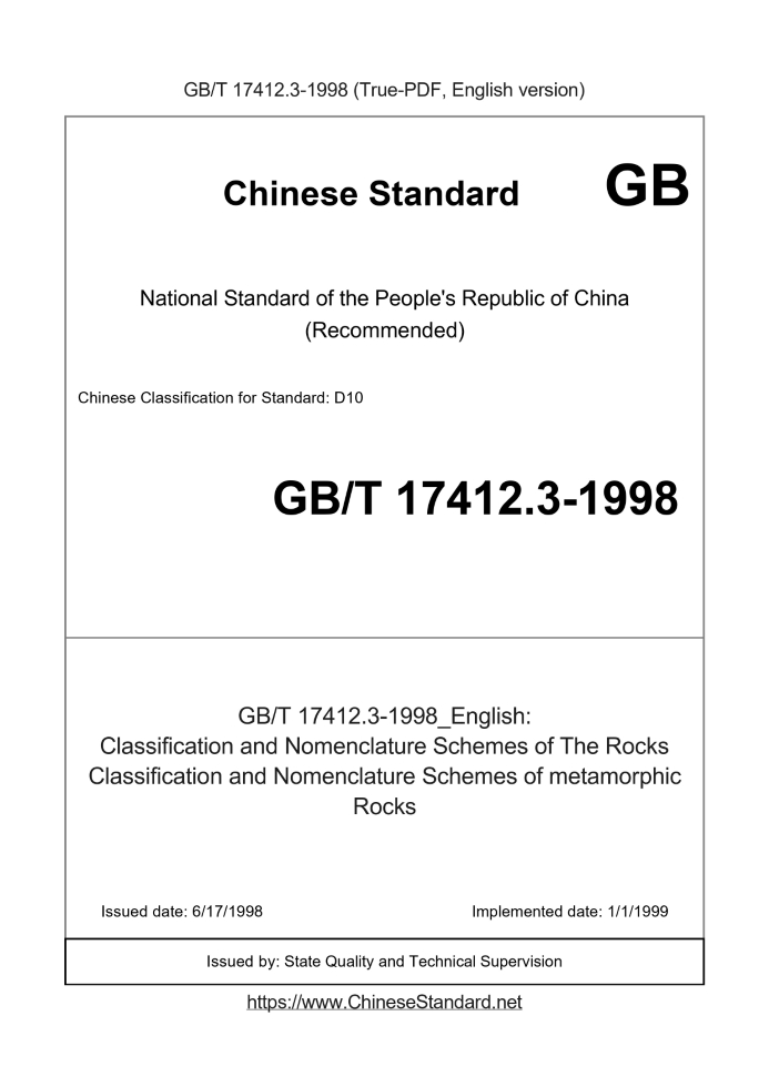 GB/T 17412.3-1998879 Add to Cart 5 days Classification and Nomenclature Schemes of The Rocks Classification and Nomenclature Schemes of metamorphic Rocks