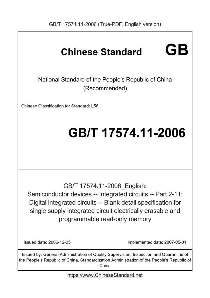 Delivery: <= 3 days. True-PDF full-copy in English will be manually translated and delivered via email. GB/T 17574.11-2006: Semiconductor devices -- Integrated circuits -- Part 2-11: Digital integrated circuits -- Blank detail specification for single supply integrated circuit electrically erasable and programmable read-only memory Status: Valid