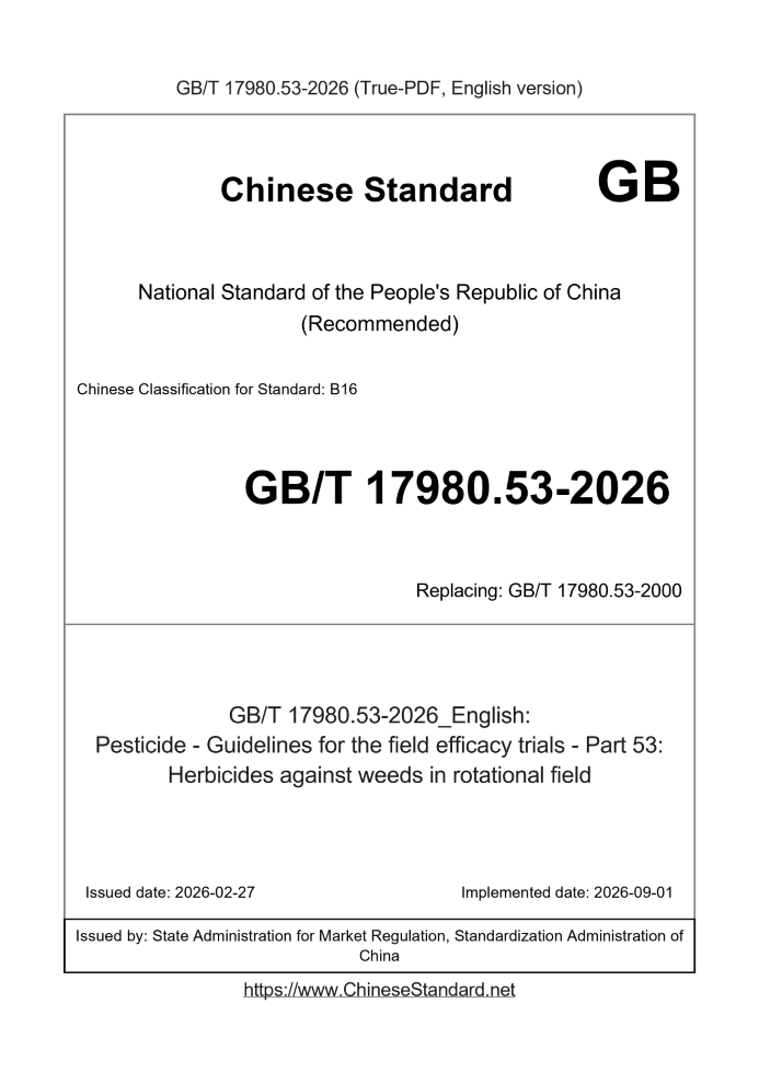 GB/T 17980.53-2026: Pesticide - Guidelines for the field efficacy trials - Part 53: Herbicides against weeds in rotational field