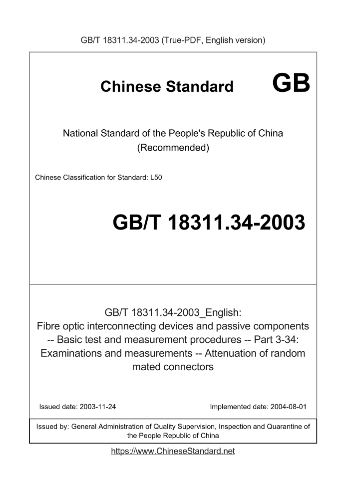 GB/T 18311.34-2003: Fibre optic interconnecting devices and passive components -- Basic test and measurement procedures -- Part 3-34: Examinations and measurements -- Attenuation of random mated connectors