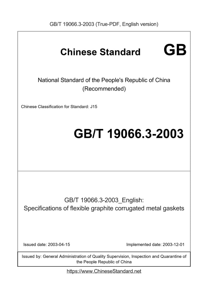 Delivery: <= 3 days. True-PDF full-copy in English will be manually translated and delivered via email. GB/T 19066.3-2003: Specifications of flexible graphite corrugated metal gaskets Status: Obsolete