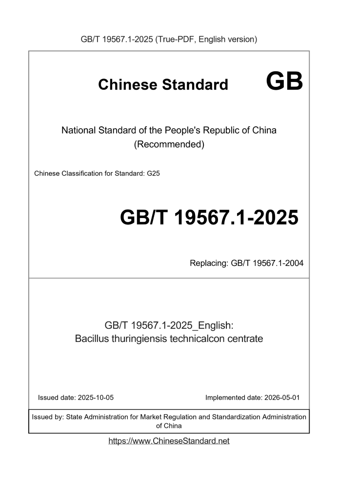 US$439.00 · In stock · Download in 9 secondsGB/T 19567.1-2025: Bacillus thuringiensis technicalcon centrate
