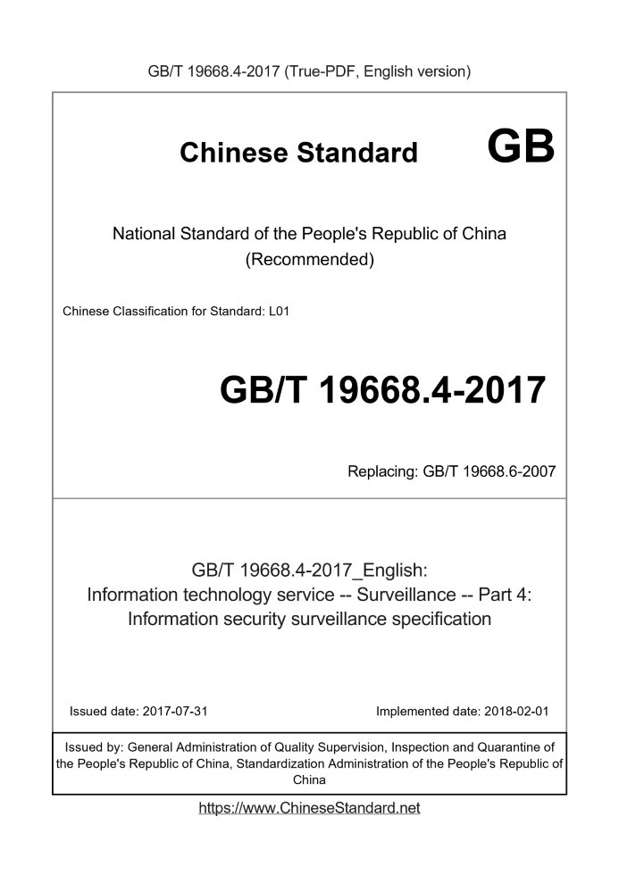 GB/T 19668.4-2017: Information technology service -- Surveillance -- Part 4: Information security surveillance specification