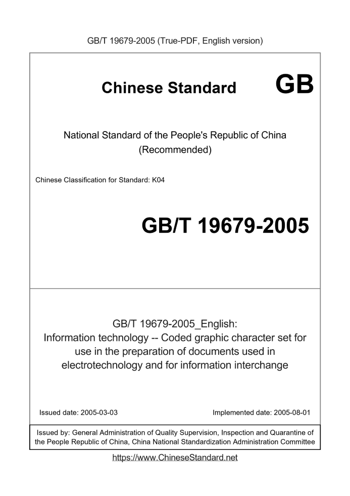 GB/T 19679-2005: Information technology -- Coded graphic character set for use in the preparation of documents used in electrotechnology and for information interchange