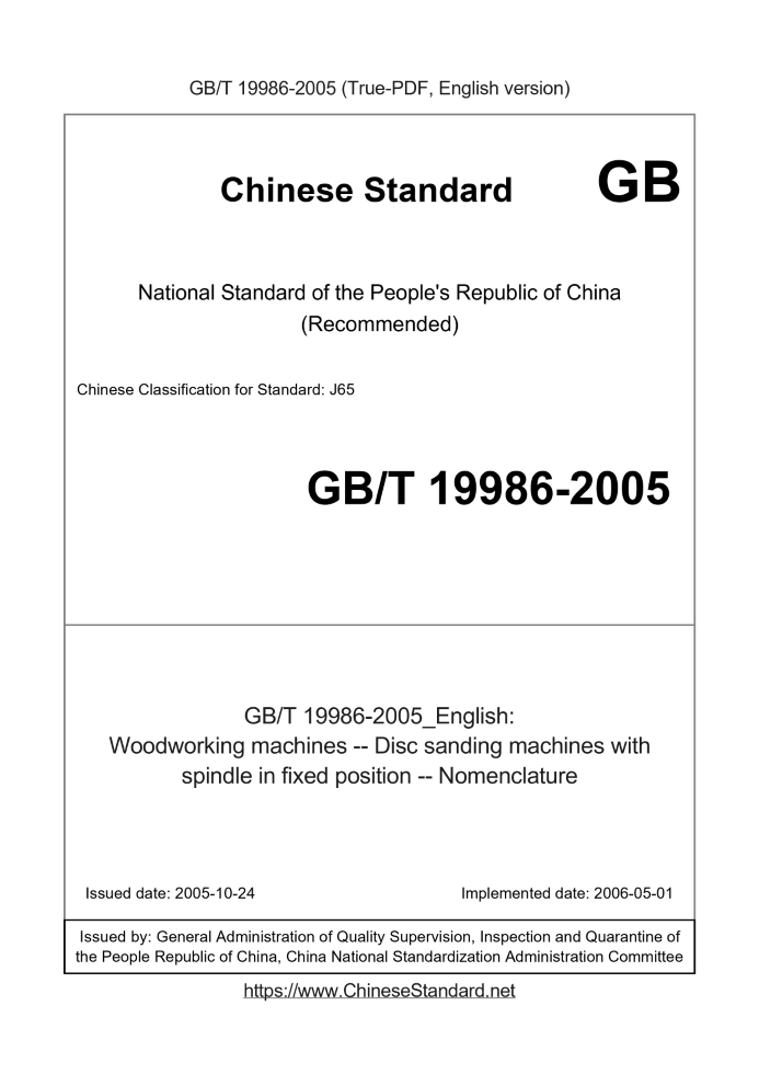 GB/T 19986-2005134 Add to Cart 3 days Woodworking machines -- Disc sanding machines with spindle in fixed position -- Nomenclature Valid