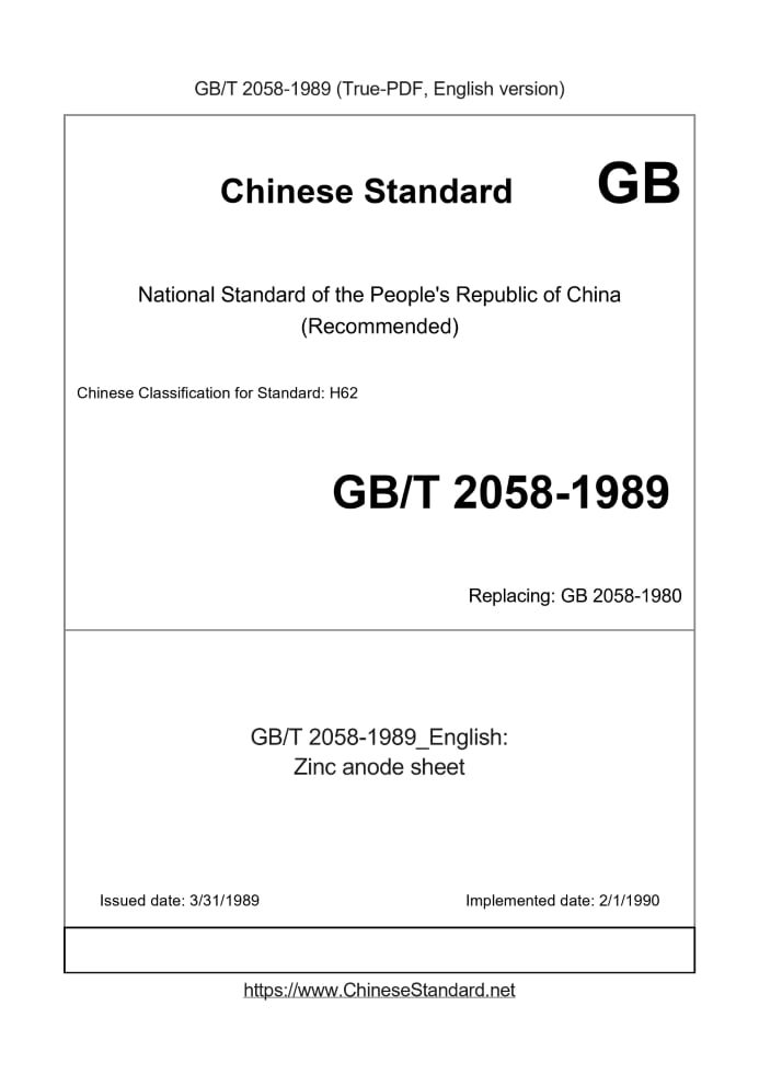 Standard ID: GB/T 2058-1989 (GB/T2058-1989)