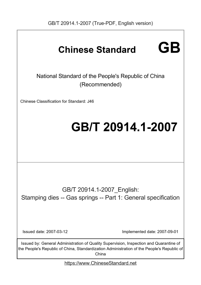 GB/T 20914.1-2007234 Add to Cart 3 days Stamping dies -- Gas springs -- Part 1: General specification Valid
