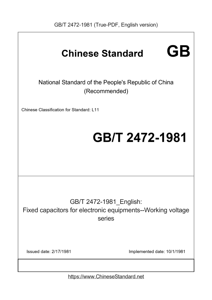 GB/T 2472-1981199 Add to Cart 2 days Fixed capacitors for electronic equipments--Working voltage series Obsolete