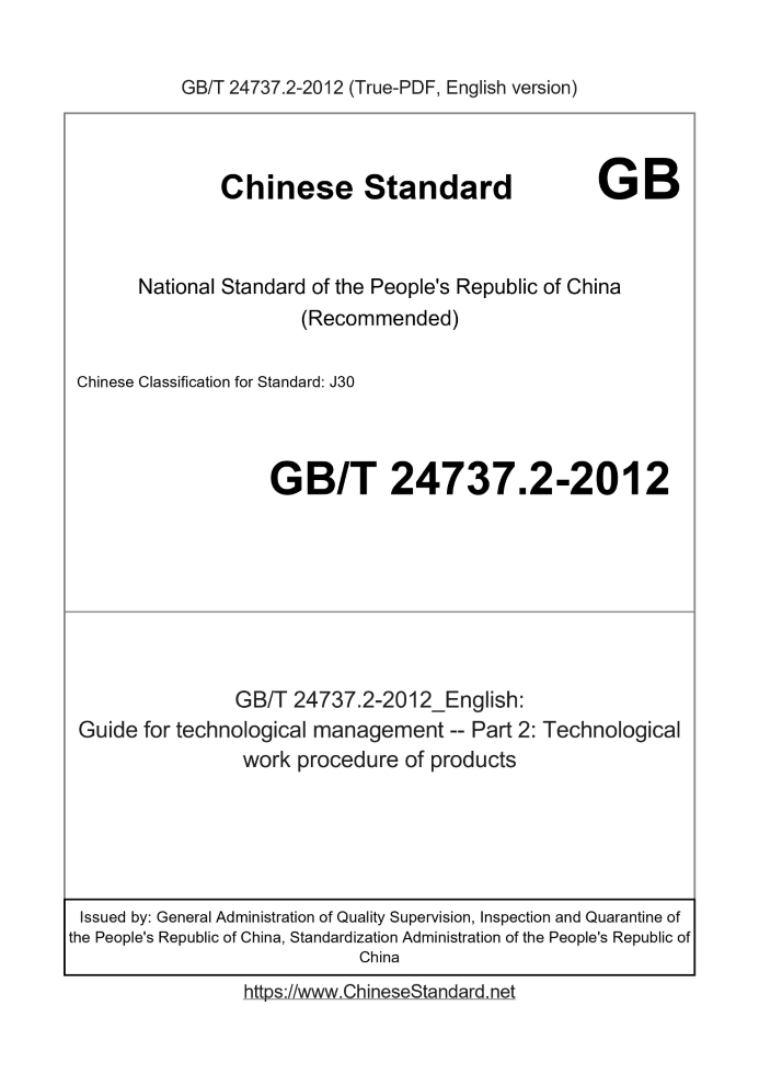 Delivery: <= 3 days. True-PDF full-copy in English will be manually translated and delivered via email. GB/T 24737.2-2012: Guide for technological management -- Part 2: Technological work procedure of products Status: Valid