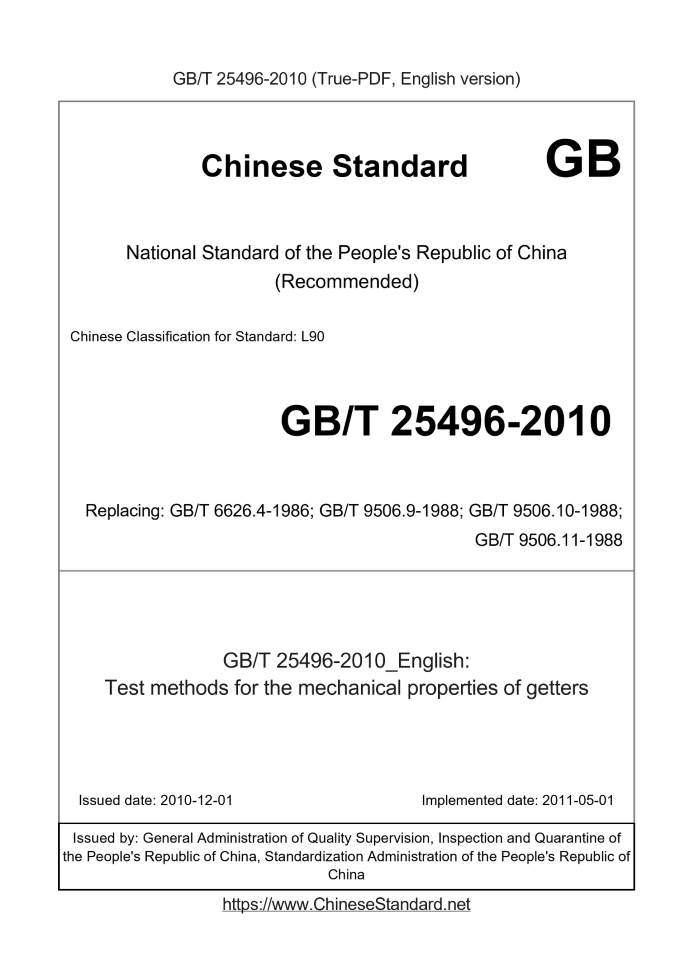 | GB/T 25496-2010 English PDFUS$329.00 ยท In stock Delivery: <= 3 days. True-PDF full-copy in English will be manually translated and delivered via email. GB/T 25496-2010: Test methods for the mechanical properties of getters Status: Valid