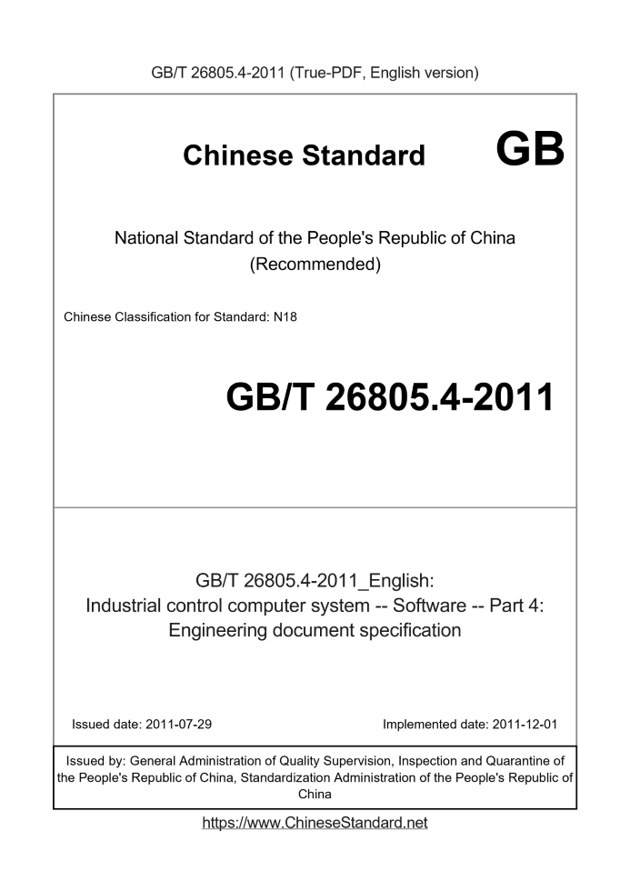 Delivery: <= 10 days. True-PDF full-copy in English will be manually translated and delivered via email. GB/T 26805.4-2011: Industrial control computer system -- Software -- Part 4: Engineering document specification Status: Valid