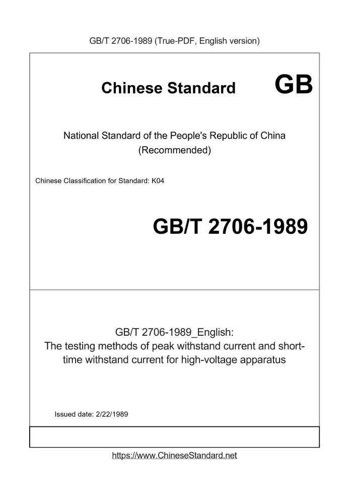 Basic dataStandard ID: GB/T 2706-1989 (GB/T2706-1989)Description (Translated English): The testing methods of peak withstand current and short-time withstand current for high-voltage apparatus Sector / Industry: National Standard (Recommended) Classification of Chinese Standard: K04 Date of Issue: 2/22/1989 Tips & Frequently Asked Questions:Question 1: How long will the true-PDF of GB/T 2706-1989_English be delivered?Answer: Upon your order, we will start to translate GB/T 2706-1989_English as soon as possible, and keep you informed of the progress. The lead time is typically 1 ~ 3 working days. The lengthier the document the longer the lead time.Question 2: Can I share the purchased PDF of GB/T 2706-1989_English with my colleagues?Answer: Yes. The purchased PDF of GB/T 2706-1989_English will be deemed to be sold to your employer/organization who actually pays for it, including your colleagues and your employer's intranet.Question 3: Does the price include tax/VAT?Answer: Yes. Our tax invoice, downloaded/delivered in 9 seconds, includes all tax/VAT and complies with 100+ countries' tax regulations (tax exempted in 100+ countries) -- See Avoidance of Double Taxation Agreements (DTAs): List of DTAs signed between Singapore and 100+ countriesQuestion 4: Do you accept my currency other than USD?Answer: Yes. If you need your currency to be printed on the invoice, please write an email to Sales@ChineseStandard.net. In 2 working-hours, we will create a special link for you to pay in any currencies. Otherwise, follow the normal steps: Add to Cart -- Checkout -- Select your currency to pay. |