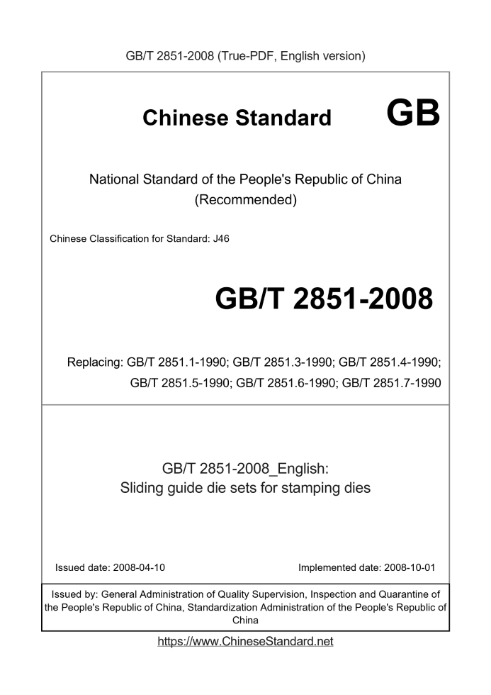 Delivery: <= 5 days. True-PDF full-copy in English will be manually translated and delivered via email. GB/T 2851-2008: Sliding guide die sets for stamping dies Status: Valid GB/T 2851: Historical versions