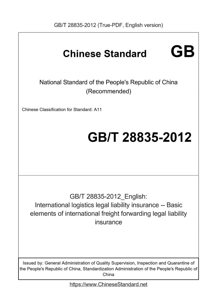 Delivery: <= 1 days. True-PDF full-copy in English will be manually translated and delivered via email. GB/T 28835-2012: International logistics legal liability insurance -- Basic elements of international freight forwarding legal liability insurance Status: Valid