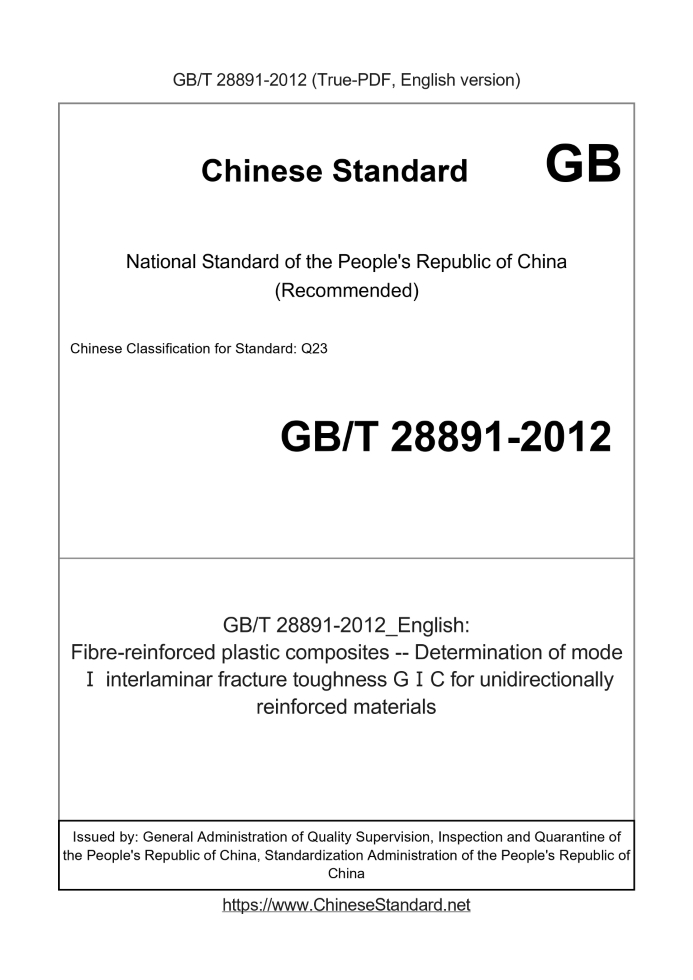 GB/T 28891-2012: Fibre-reinforced plastic composites -- Determination of mode Ⅰ interlaminar fracture toughness GⅠC for unidirectionally reinforced materials
