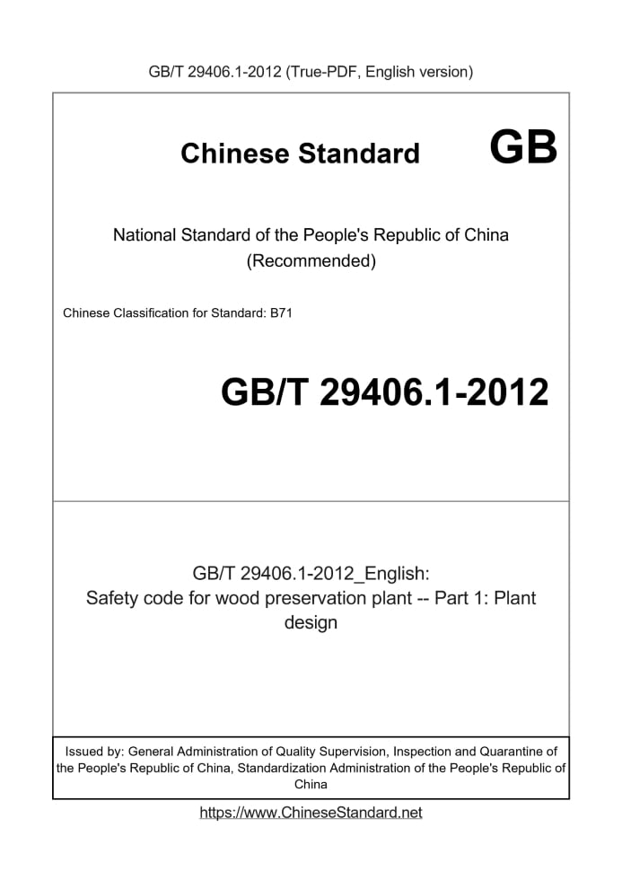 Delivery: <= 3 days. True-PDF full-copy in English will be manually translated and delivered via email. GB/T 29406.1-2012: Safety code for wood preservation plant -- Part 1: Plant design Status: Valid