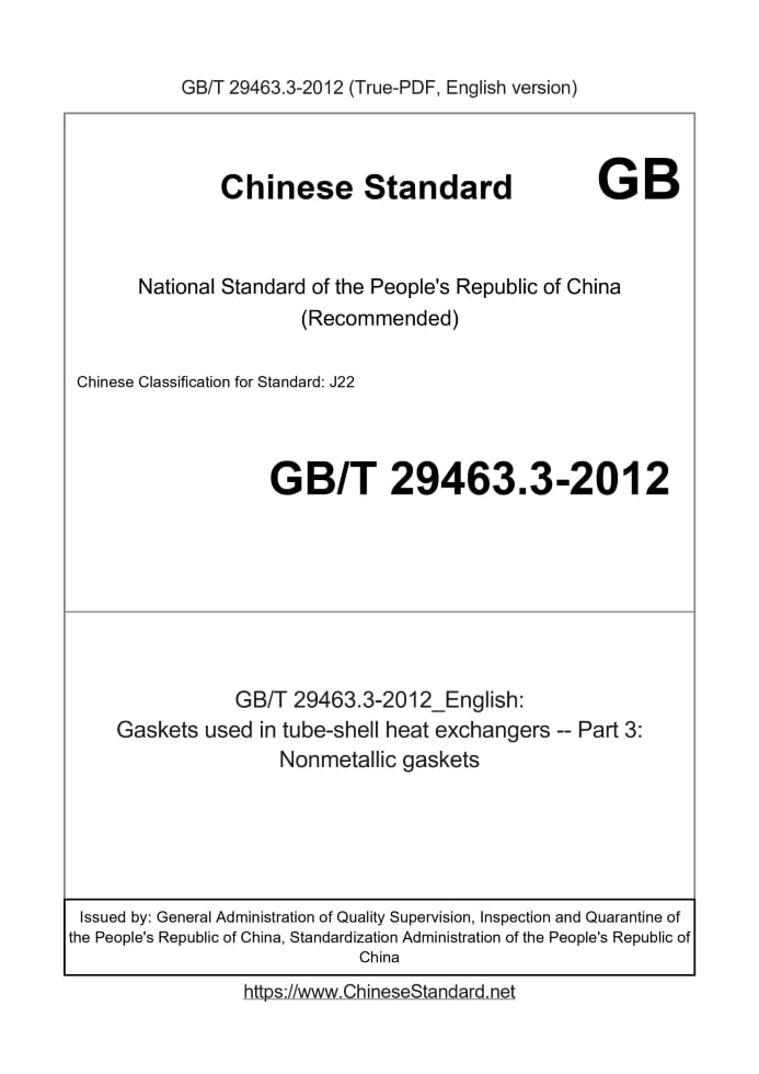 GB/T 29463.3-2012: Gaskets used in tube-shell heat exchangers -- Part 3: Nonmetallic gaskets