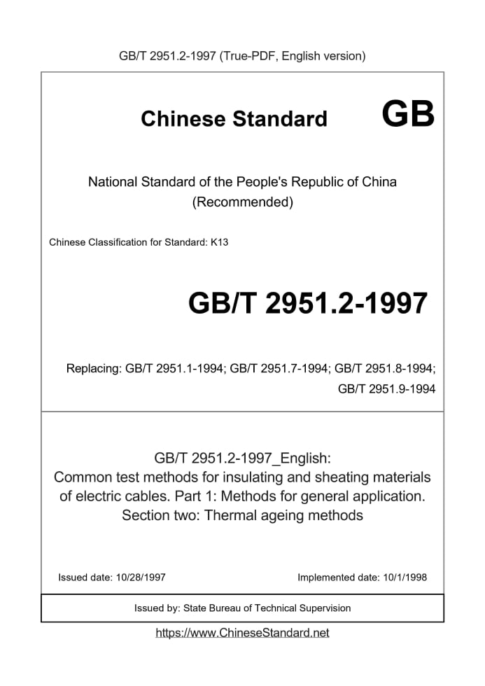 Older Standard (superseded by this standard): GB/T 2951.1-1994; GB/T 2951.7-1994; GB/T 2951.8-1994; GB/T 2951.9-1994