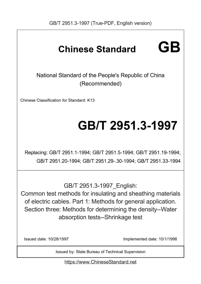 Older Standard (superseded by this standard): GB/T 2951.1-1994; GB/T 2951.5-1994; GB/T 2951.19-1994; GB/T 2951.20-1994; GB/T 2951.29-.30-1994; GB/T 2951.33-1994