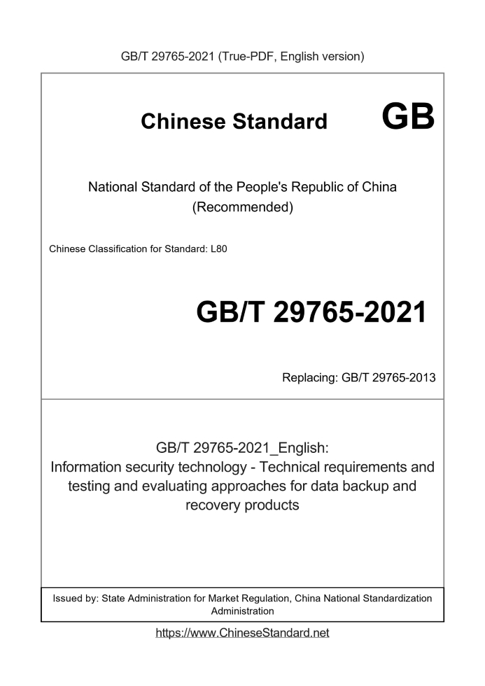 Delivery: <= 5 days. True-PDF full-copy in English will be manually translated and delivered via email. GB/T 29765-2021: Information security technology - Technical requirements and testing and evaluating approaches for data backup and recovery products Status: Valid GB/T 29765: Historical versions