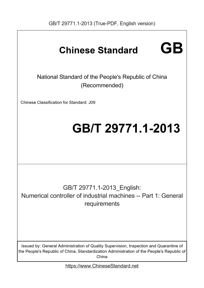 GB/T 29771.1-2013: Numerical controller of industrial machines -- Part 1: General requirements